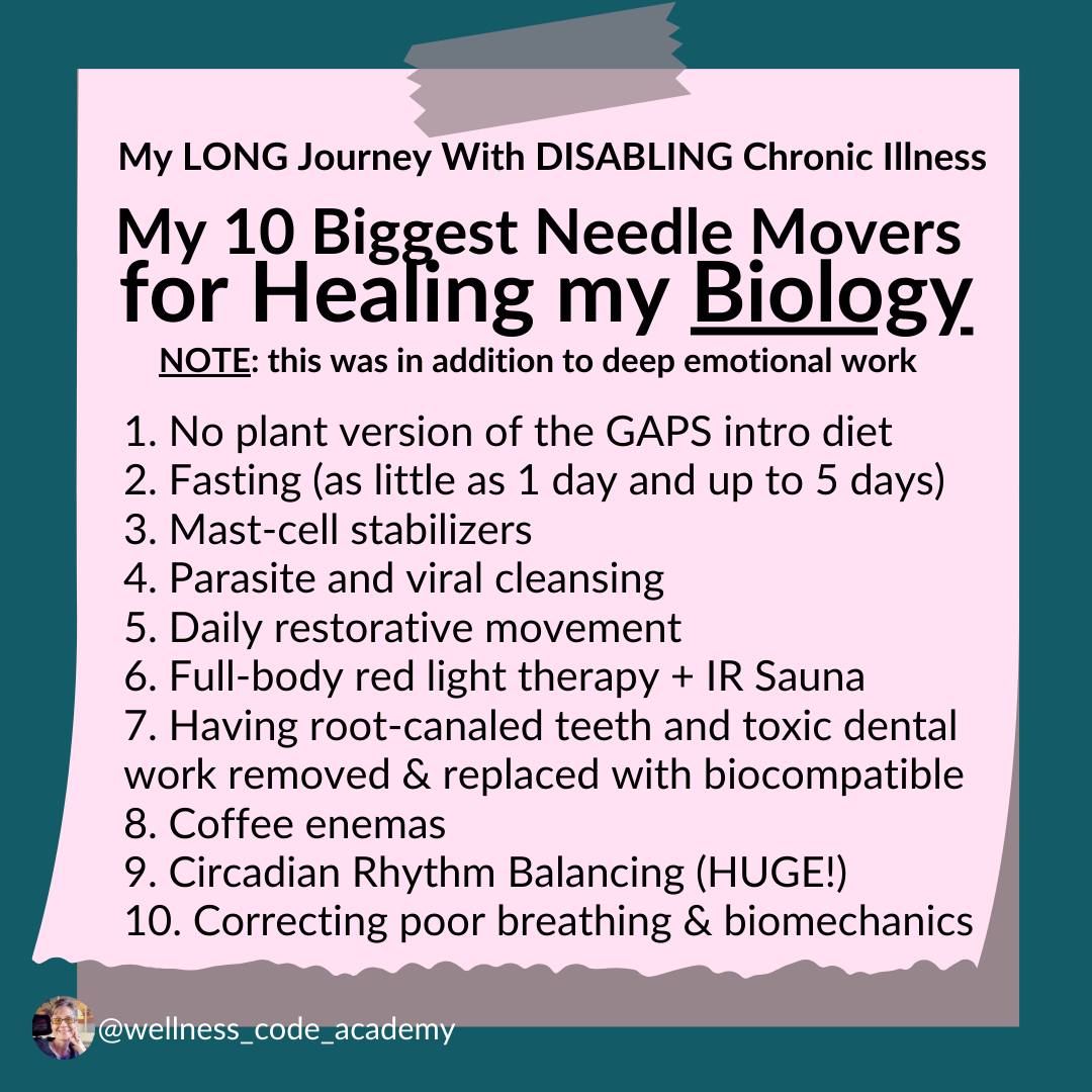 Disabling chronic illness (with too many diagnoses to list, but the main ones being Myalgic Encephalomyelitis / Chronic Fatigue Syndrome and Mast Cell Activation Syndrome) has been a long, hellish odyssey that I wouldn't wish on anybody, but it's also been my most outstanding teacher.